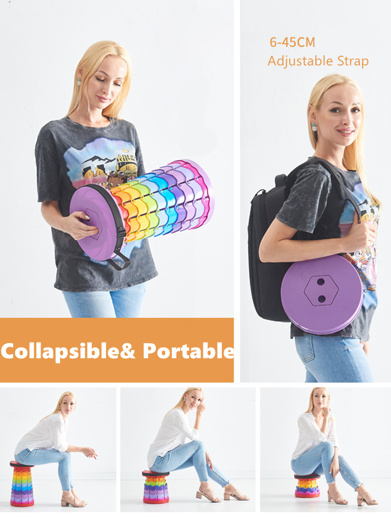 1.High-quality Material: This portable telescopic stool is made of the latest environmentally friendly materials, polymer polypropylene material, which is stronger, more durable, more stable, and lighter!
