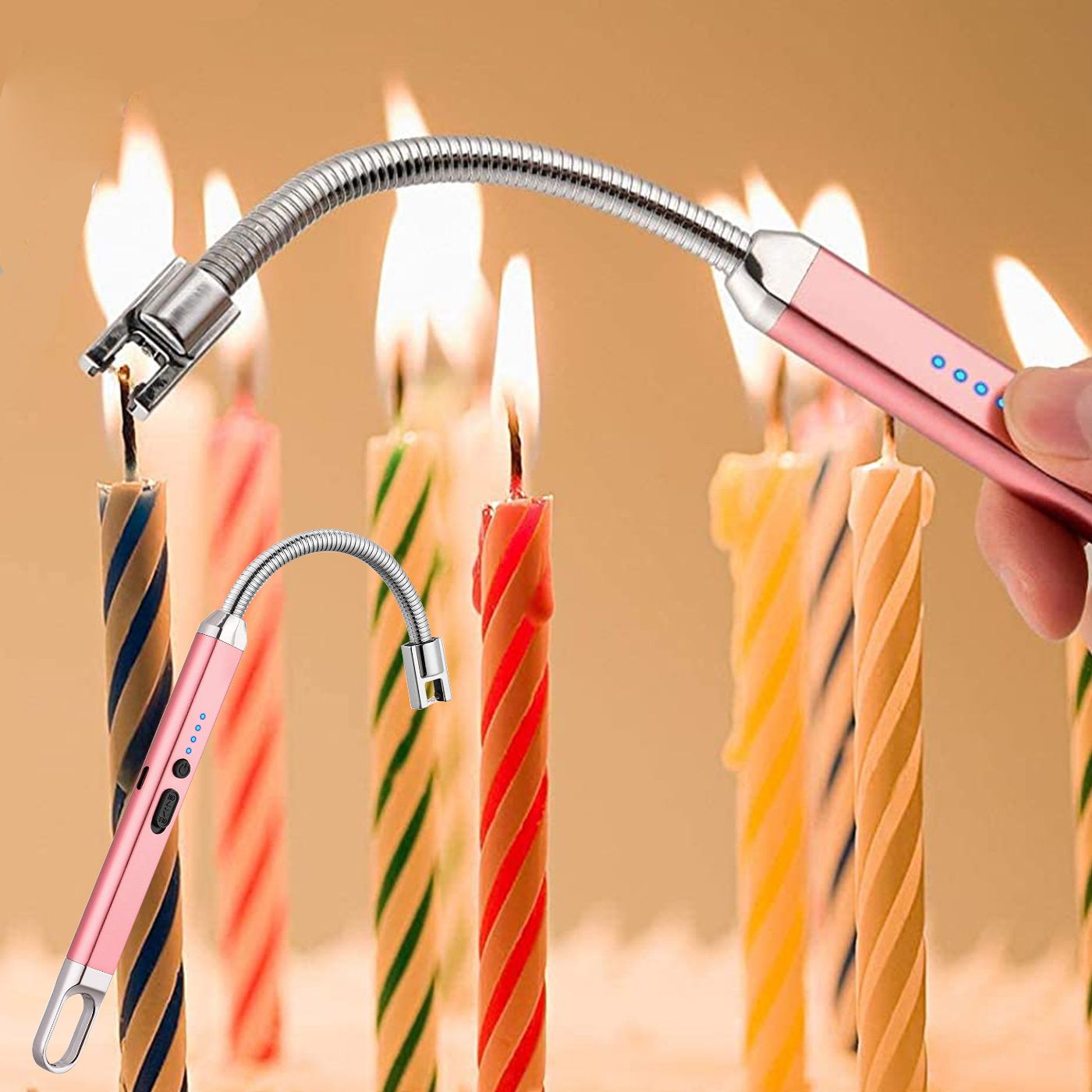 1pc Electric Candle Lighter; Rechargeable Safety Lighter With LED Indicator For Camping BBQ (Rose Golden) 11.8inch